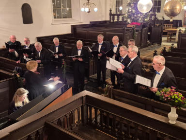 Kerstnachtdienst Sebastiaankerk Warffum – 24 decemberAls Warffums Mannenkoor mochten wij ons muzikale jaar 2025 op bijzondere wijze afsluiten met onze medewerking aan de Kerstnachtdienst in de Sebastiaankerk te Warffum.Onder leiding van onze dirigente Liesbeth van Hoffen en met pianobegeleiding van Liesbeth Wildeveld zongen wij bij de opening van de dienst het bekende kerstlied “Komt allen tezamen” – een passend begin van deze sfeervolle avond.De dienst werd geleid door Jan Johan Kuiper. Het orgel werd bespeeld door Hans Nomen, die met zijn spel bijdroeg aan de ingetogen en feestelijke sfeer.Verder verleenden wij muzikale medewerking met de volgende werken:-The First Noël-Oh du fröhliche-Dona nobis pacem-Gloria (Taizé)Wij mogen met voldoening terugkijken op een fijne kerkdienst en een geslaagde afsluiting van ons muzikale jaar.Met vertrouwen en nieuwsgierigheid kijken wij vooruit naar wat 2026 ons als koor zal brengen ��✨