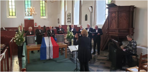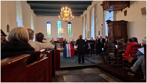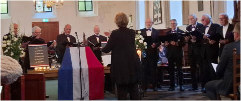 Dodenherdenking 4 mei 2025 – BafloOp zondag 4 mei 2025 mochten we zingen tijdens de herdenkingsbijeenkomst in de Laurentiuskerk te Baflo, georganiseerd ter nagedachtenis aan de slachtoffers van de Tweede Wereldoorlog en latere conflicten.De plechtigheid begon bij het monument buiten, waar kransen werden gelegd en twee minuten stilte in acht werd genomen. Muziekkorps Sereno verzorgde daar een ingetogen muzikale bijdrage, en gezamenlijk zongen we het Wilhelmus.Aansluitend volgde de herdenkingsdienst in de Laurentiuskerk. Het Mannenkoor zong drie indrukwekkende stukken en ook Sereno speelde enkele passende muziekwerken. De bijeenkomst begon met het aansteken van kaarsen ter nagedachtenis aan de oorlogsslachtoffers uit Baflo – een indrukwekkend moment van bezinning.De heer E. Danhof uit Baflo vertelde over het oorlogsverleden van het dorp. Twee kinderen van SWS Noorderlicht droegen op ontroerende wijze een gedicht voor. De herdenkingstoespraak werd gehouden door mevrouw K. van Brandwijk uit Uithuizen, namens het Veteraneninstituut, met als thema “80 jaar vrijheid”.De Algemene Oranjevereniging Baflo mag terugkijken op een bijzonder goed bezochte, waardige en sfeervolle herdenkingsplechtigheid.