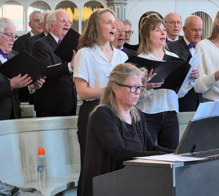Op zondag 6 april 2025 vond in de sfeervolle Pelstergasthuiskerk te Groningen het concert “Stemmen uit het Noorden” plaats. Het Warffums Mannenkoor was voor deze gelegenheid uitgenodigd door het dameskoor Femmes Majeures uit Groningen. Het concert werd goed bezocht. De kerk was tot de laatste plek gevuld met een enthousiast publiek.Aan het concert werkten de volgende gezelschappen mee:Dameskoor Femmes Majeures (Groningen)Jeunes Femmes Majeures (Groningen)Warffums MannenkoorJan Roelof Bathoorn, accordeonistDe algehele muzikale leiding was in handen van dirigent Liesbeth van Hoffen. De koren werden vakkundig begeleid op piano door Liesbeth Wildeveld.De middag kenmerkte zich door een afwisselend en boeiend programma, waarin de stemmen van Noord-Nederland tot hun recht kwamen. Van ingetogen melodieën tot krachtig samenzang – het publiek genoot zichtbaar en hoorbaar van de optredens.Wij kijken met veel plezier terug op dit geslaagde concert. De samenwerking met de andere koren verliep bijzonder prettig en smaakt zeker naar meer. Wat ons betreft is een herhaling in de toekomst meer dan welkom!