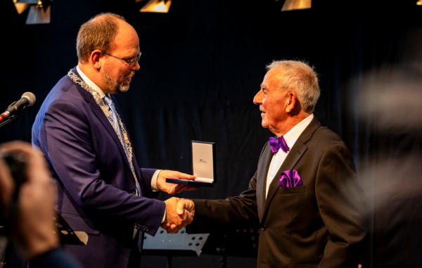 woorden: “Ik hoop van harte dat deze onderscheiding bijdraagt aan nog eens 125 jaar vocaal geweld uit het Hogeland.