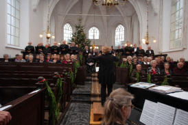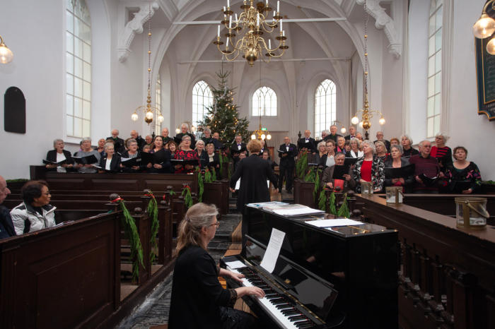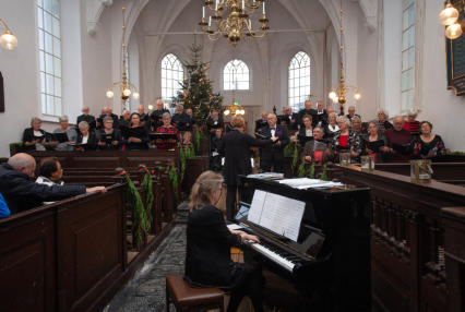 Kerstconcert 2024Het Warffums Mannenkoor heeft als afsluiting van het jubileumjaar 2024 op 22 december j.l. een kerstconcert georganiseerd.Het was een bijzonder kerstconcert, want er namen maar liefst 5 koren aan deel, die in diverse samenstellingen een Zweeds getint kerstconcert brachten.Aan het concert namen deel:•Warffums Mannenkoor•Gruno’s Mannenkoor•Huis-Tuin-en-Keukenkoor•Gemengd Zangkoor Usquert•Vrouwenkoor Femmes Majeures.De muzikale leiding was in handen van onze dirigent Liesbeth van Hoffen en het koor werd op de piano begeleid door Liesbeth Wildeveld.Muzikale intermezzo’s werden verzorgd door Saskia Rozeveld op viool en Liesbeth Wildeveld op piano. Het concert werd omlijst door het orgelspel van Rudi Diekstra. De presentatie was in handen van Anja Poelma uit Winsum.U kunt het concert tijdelijk terugzien op YouTube. De link is https://youtu.be/4GLhw5FytdUen blijft ongeveer tot eind januari online.