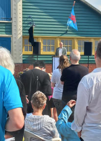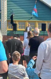 Opening Theater Meroakel in Warffum – 31 mei 2025Op zaterdagmiddag 31 mei vierde de Stichting Eigendom Dorpshuis Warffum een bijzondere mijlpaal binnen het project Nieuw Roakeldais: de feestelijke opening van het nieuwe theater in Warffum, onderdeel van Dorpshuis Warffum “bij Op Roakeldais”.Om 16.00 uur verrichtte wethouder Eltjo Dijkhuis de officiële opening van het 100 jaar oude gymnastiekgebouw van de voormalige Rijks HBS, gelegen op het terrein van Op Roakeldais. Tijdens deze gelegenheid onthulde hij de nieuwe naam van het theater: Theater Meroakel.De middag begon feestelijk met een muzikale bijdrage van het Warffums Mannenkoor, dat tijdens de optocht naar het theater een eerste nummer bracht vanuit de muziekkoepel.Na het officiële moment was er volop ruimte voor ontmoeting en beleving. Bezoekers konden het theater van binnen bekijken, genieten van doorlopende korte optredens en deelnemen aan een workshop.Het Warffums Mannenkoor, onder leiding van dirigente Liesbeth van Hoffen en begeleid door pianiste Aletta Kwant, sloot de middag muzikaal en sfeervol af met een optreden in het nieuwe theater.We kijken terug op een geslaagde opening met veel enthousiasme, een feestelijke sfeer en een warm onthaal voor Theater Meroakel.